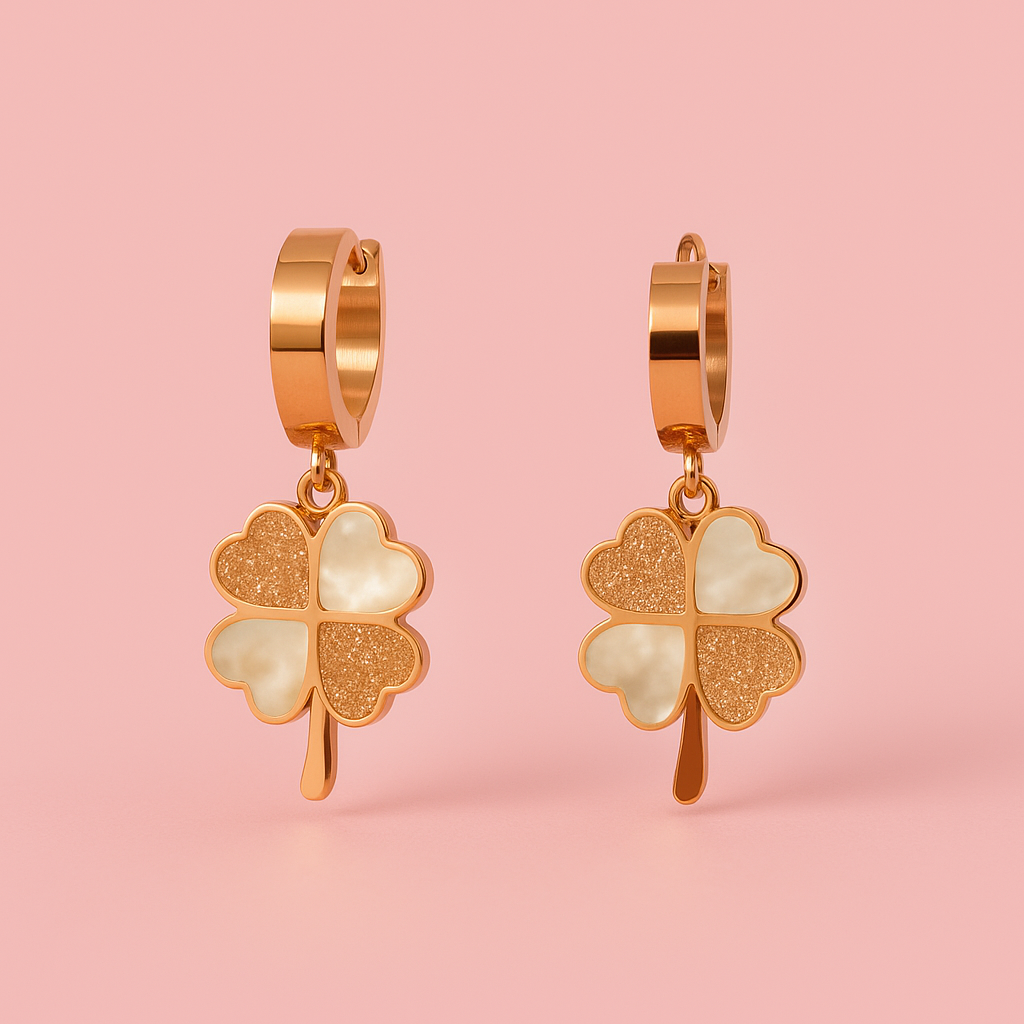 Delicate anti-tarnish earrings showcasing a four-leaf clover design crafted with shimmering mother of pearl and glitter accents for everyday elegance.