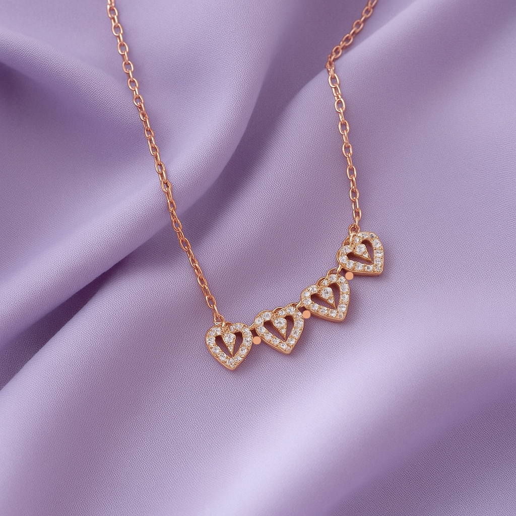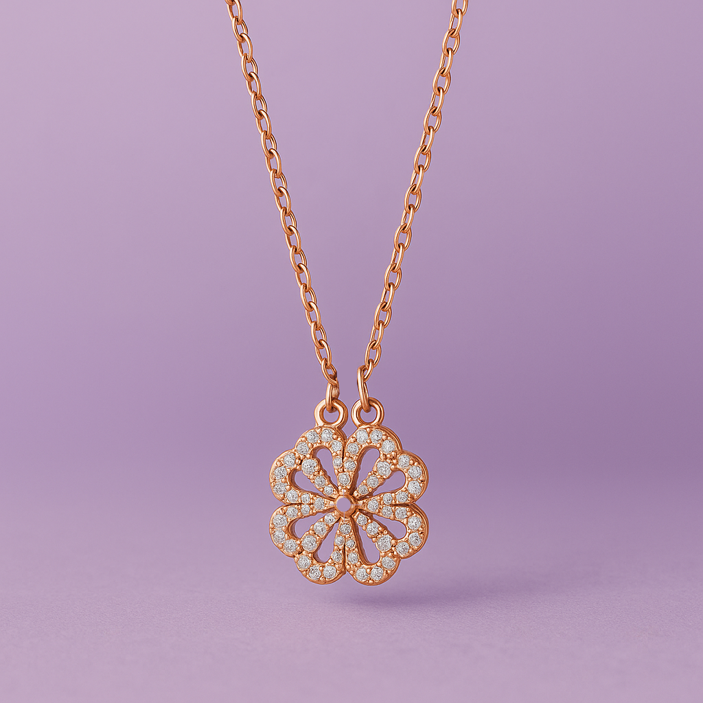 Discover the magic of connection with our Four Heart Magnet Pendant, beautifully crafted in a radiant rose gold finish. This exquisite design features four delicate heart shapes coming together to form a stunning floral pattern, accented with shimmering stones for a touch of sparkle. Symbolizing love, unity, and harmony, this pendant is a perfect gift for someone special — or a meaningful treat for yourself. Elegant yet charming, it’s a timeless addition to any jewelry collection.